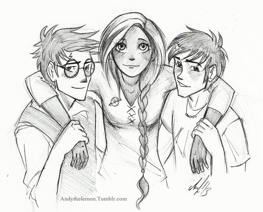 Срисовки Гарри Поттера Рона и Гермионы