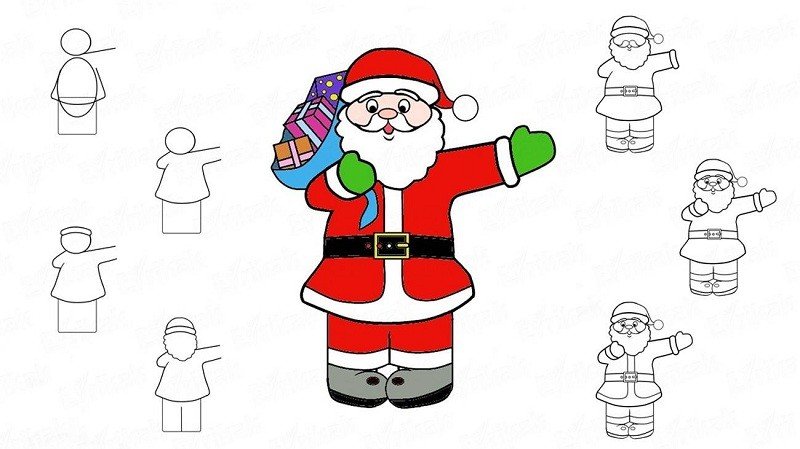 Поэтапное рисование Деда Мороза