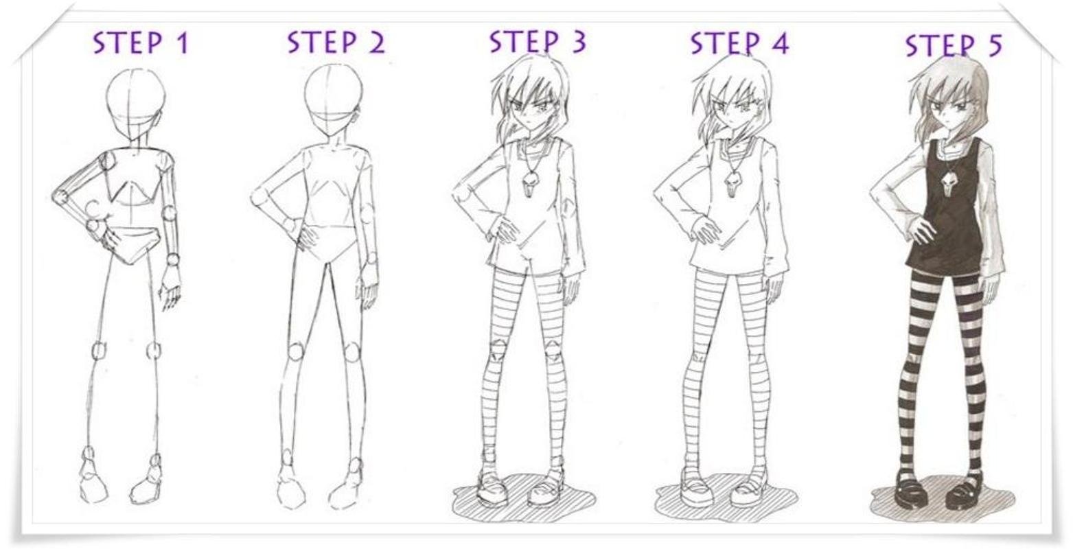 Как нарисовать аниме человека в полный рост поэтапно