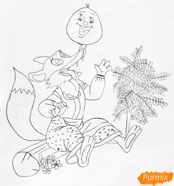 ![Лиса и Колобок рисунок карандашом]()