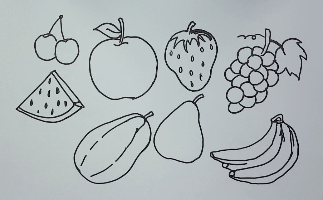 ![Фрукты карандашом]()