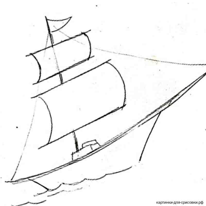 ![Поэтапный рисунок парусника]()
