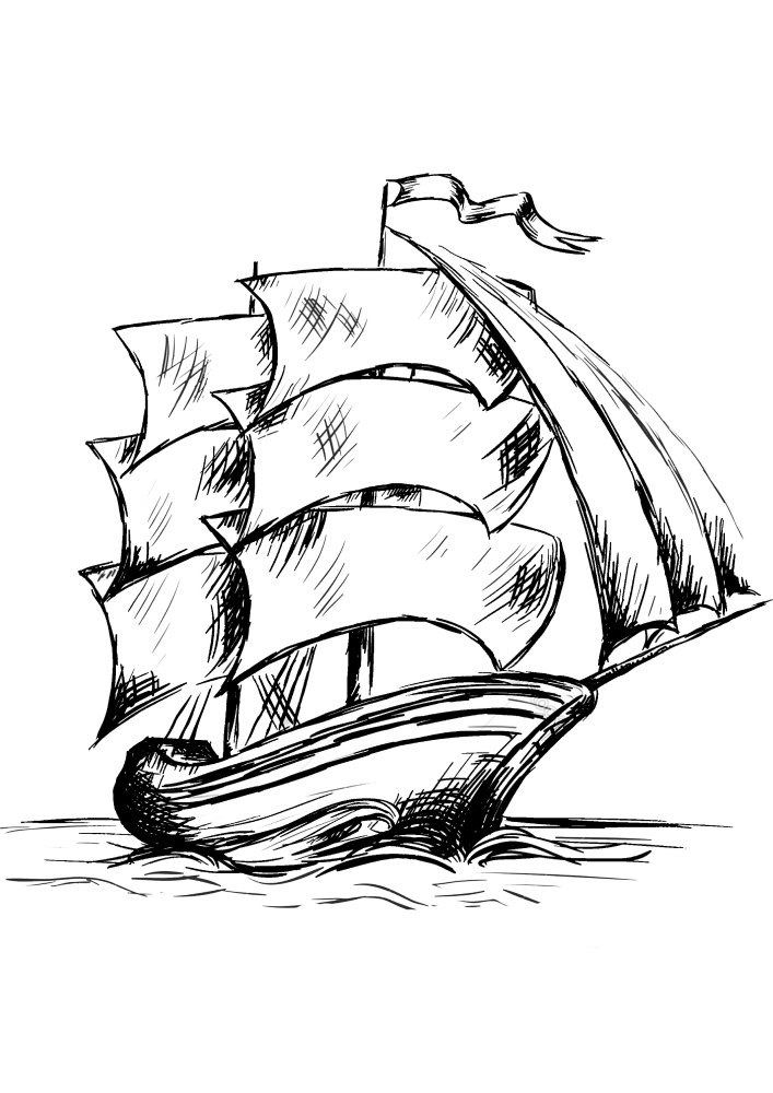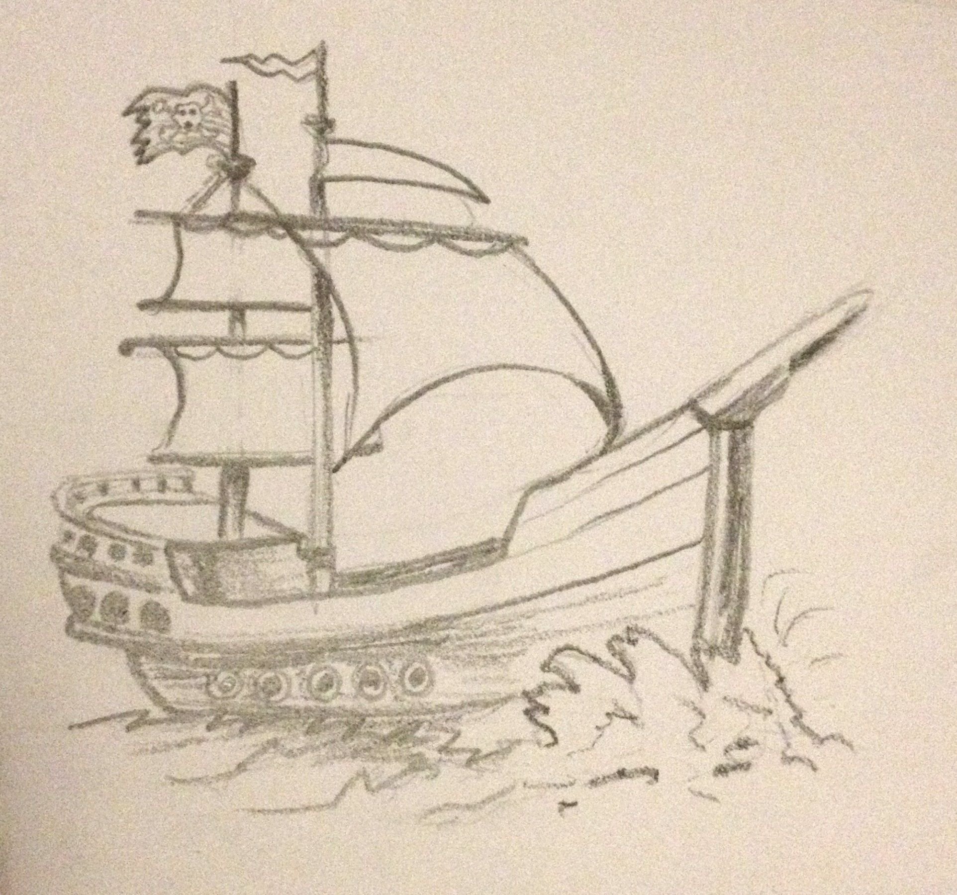 ![Пиратский корабль карандашом]()