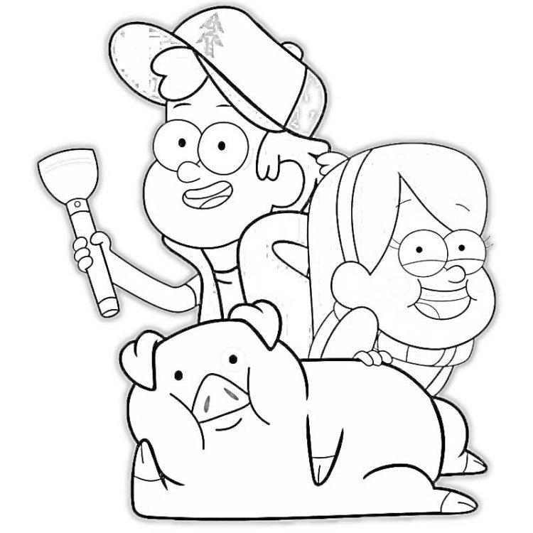 ![Раскраски Гравити Фолз Мэйбл и Диппер и Пухля]()