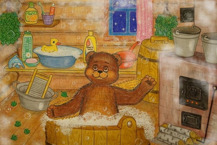 ![Медведь в бане с веником]()