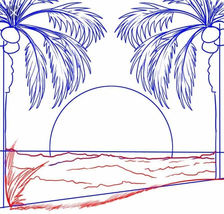 ![Пляж нарисовать карандашом]()