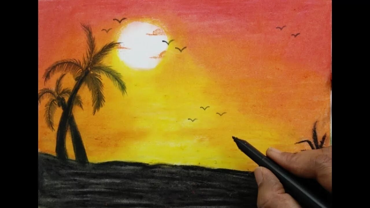 ![Нарисовать закат карандашом]()