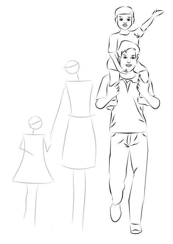 Пошаговый рисунок семьи