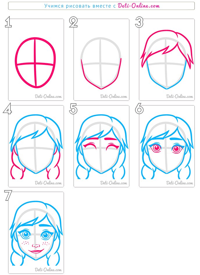 ![Пошаговая инструкция рисования лица]()