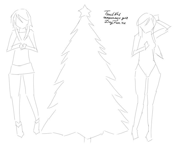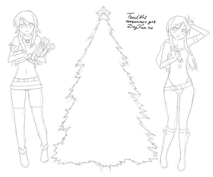 Новогодние девочки аниме для срисовки
