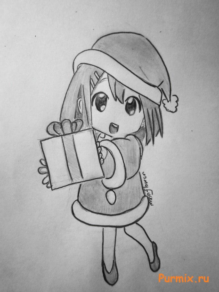 ![Новогодние рисунки аниме для срисовки карандашом]()