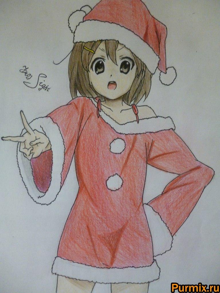 ![Новогоднее аниме карандашом]()