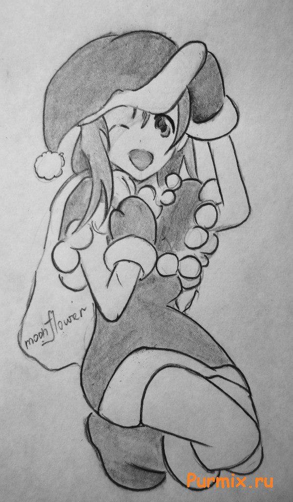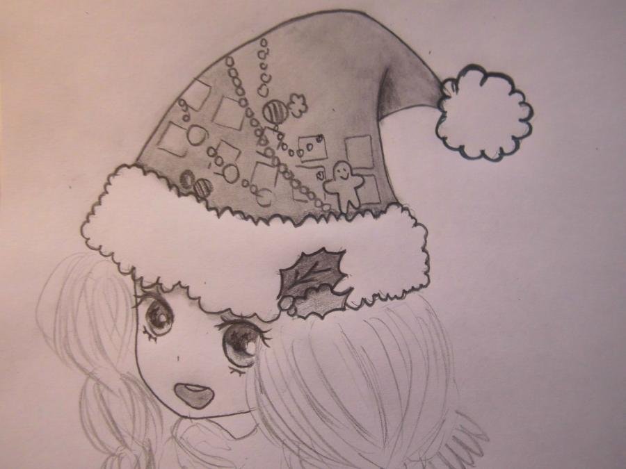 Новогодние рисунки аниме для срисовки карандашом