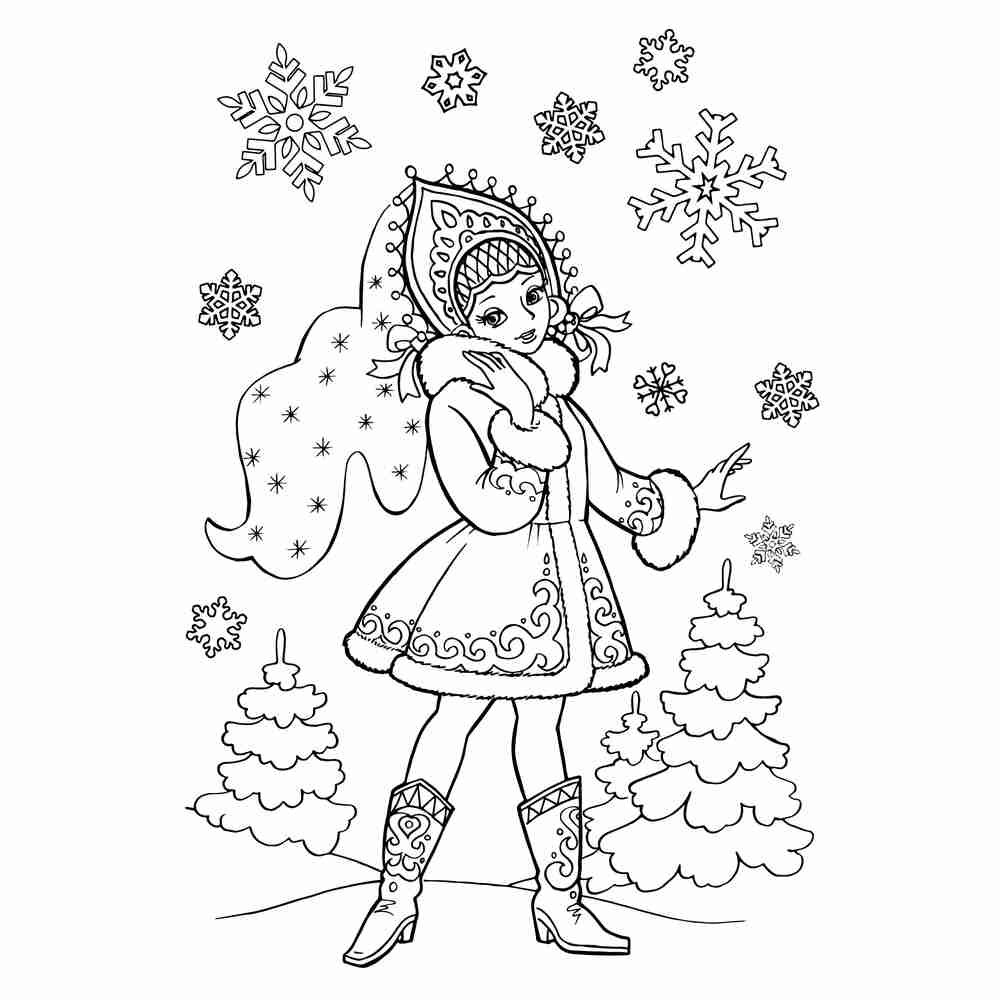 Снегурочка раскраска для детей