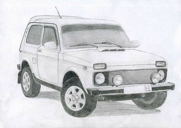 ![Рисунки карандашом машины Нива]()