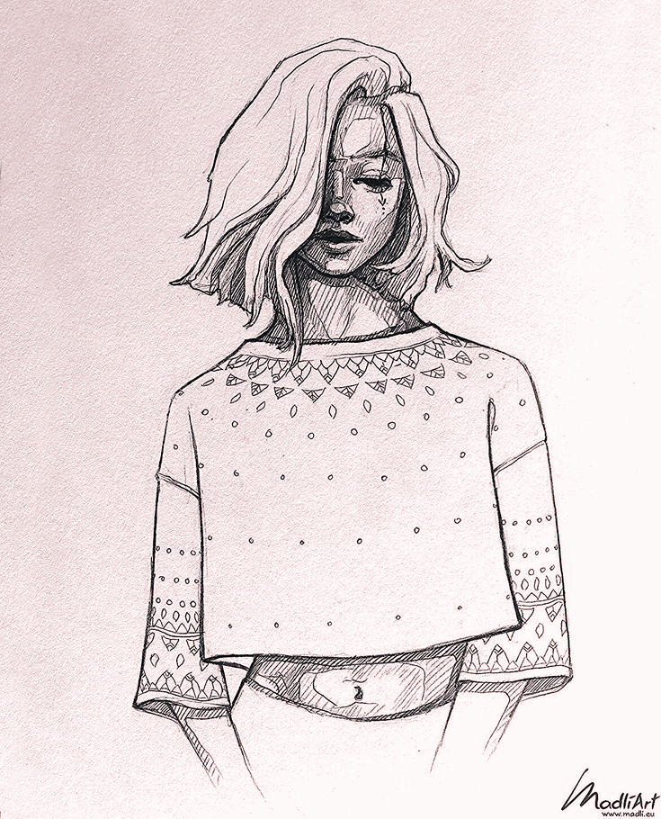 Девушка в толстовке рисунок карандашом
