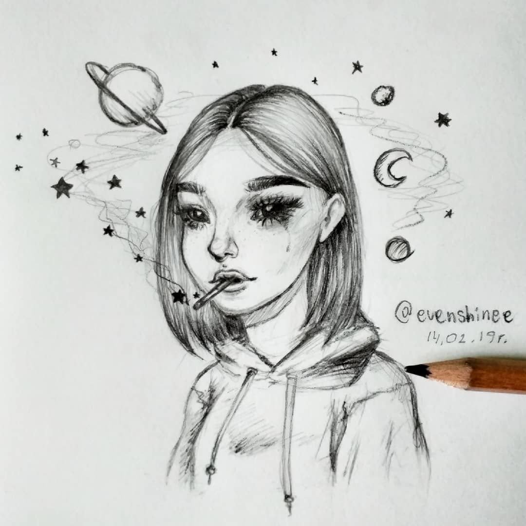 ![Рисунки для скетчбука девушки]()