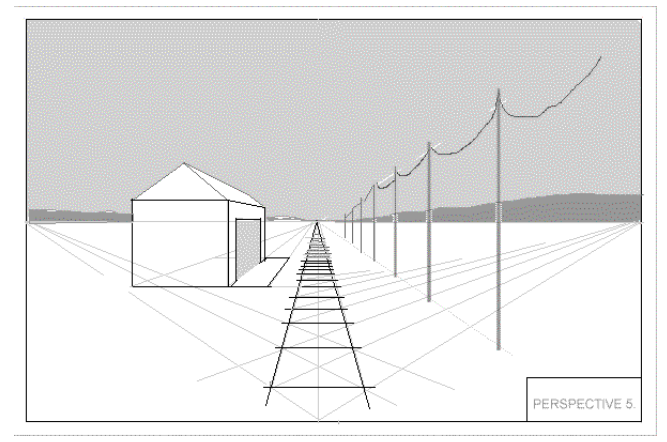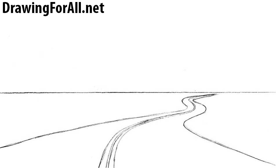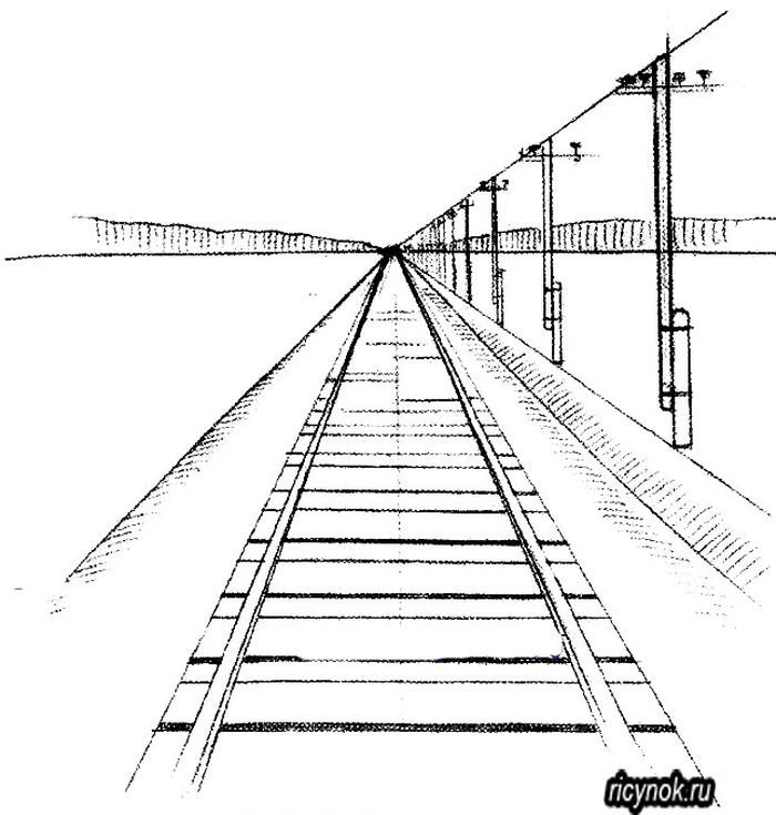 ![Линейная перспектива (дорога, столбы, дома), карандаш]()