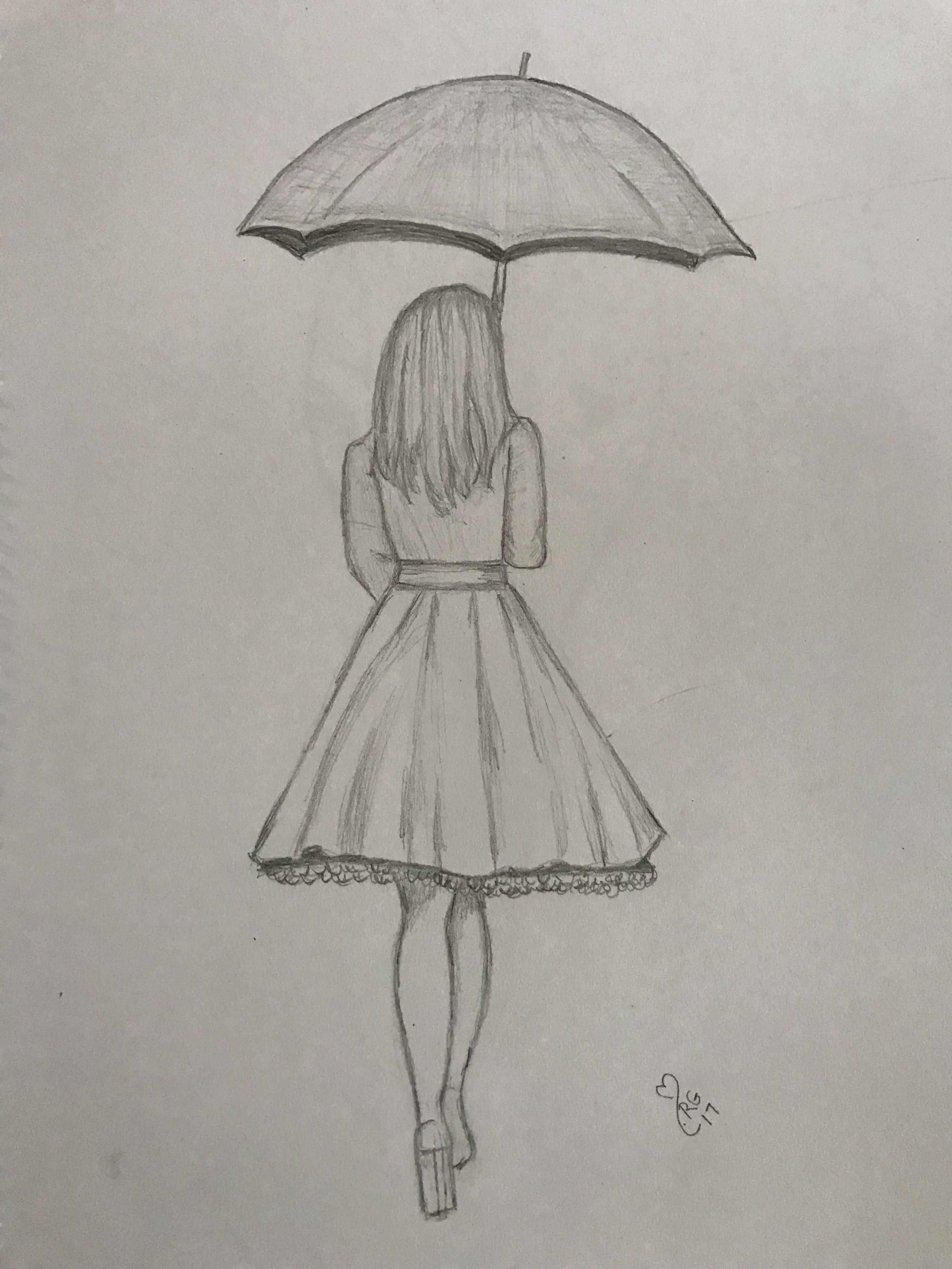 ![Девушка с зонтом рисунок]()