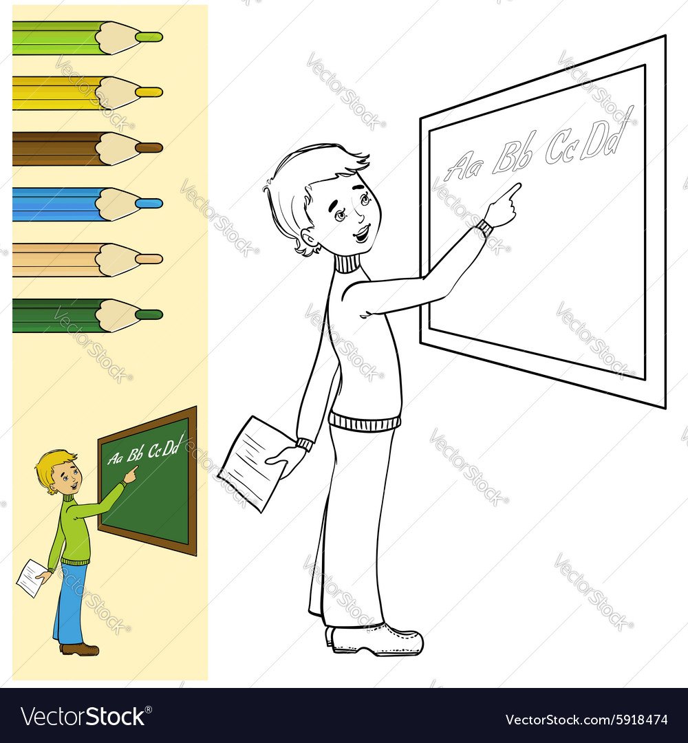 Раскраска школа ученик у доски