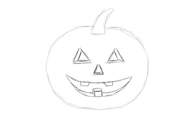 ![Рисунок тыковки на Хэллоуин карандашом]()