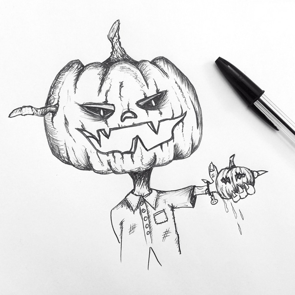 ![Тыква на Хэллоуин карандашом]()