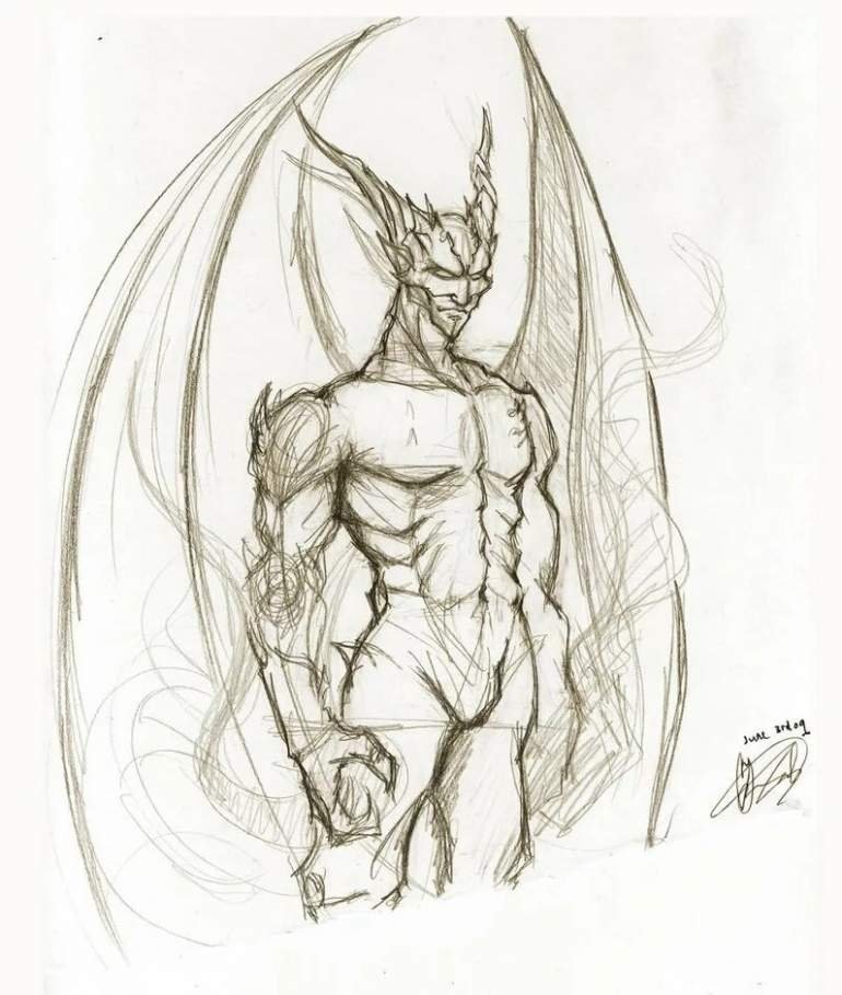![Демон зарисовки карандашом]()