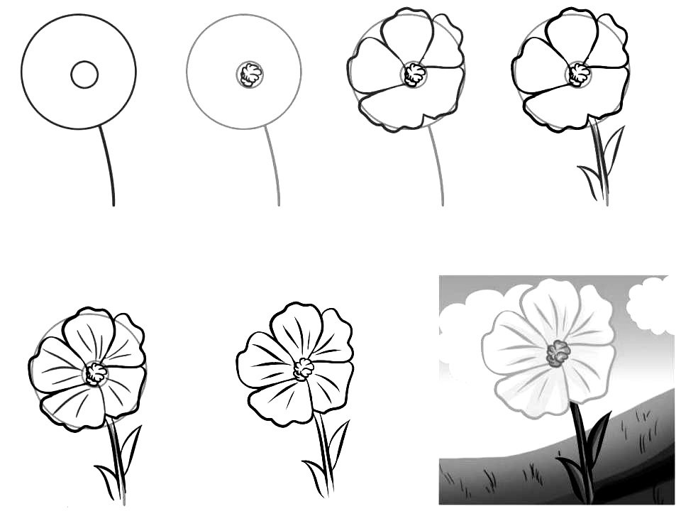 Рисование цветов поэтапно для начинающих