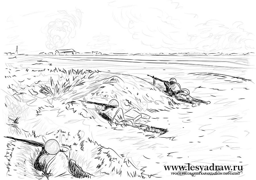 Военный пейзаж карандашом