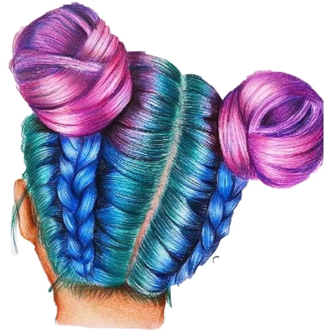 ![Яркие прически рисунки]()