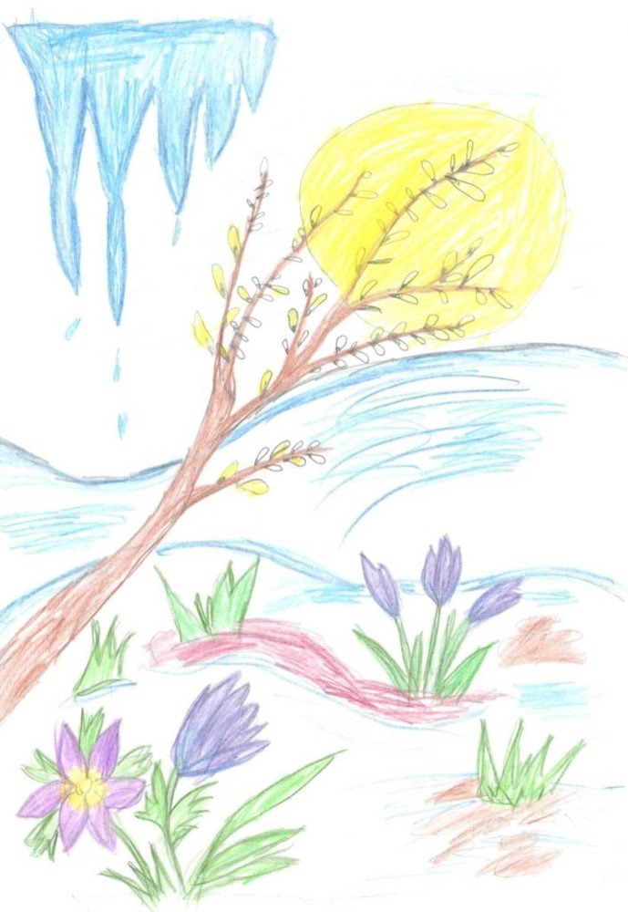 ![Рисование Весна карандашами]()