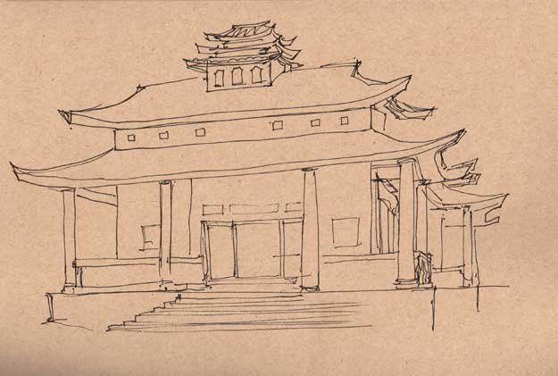 ![Храм Хигаси Хонгандзи Япония рисунок карандашом]()