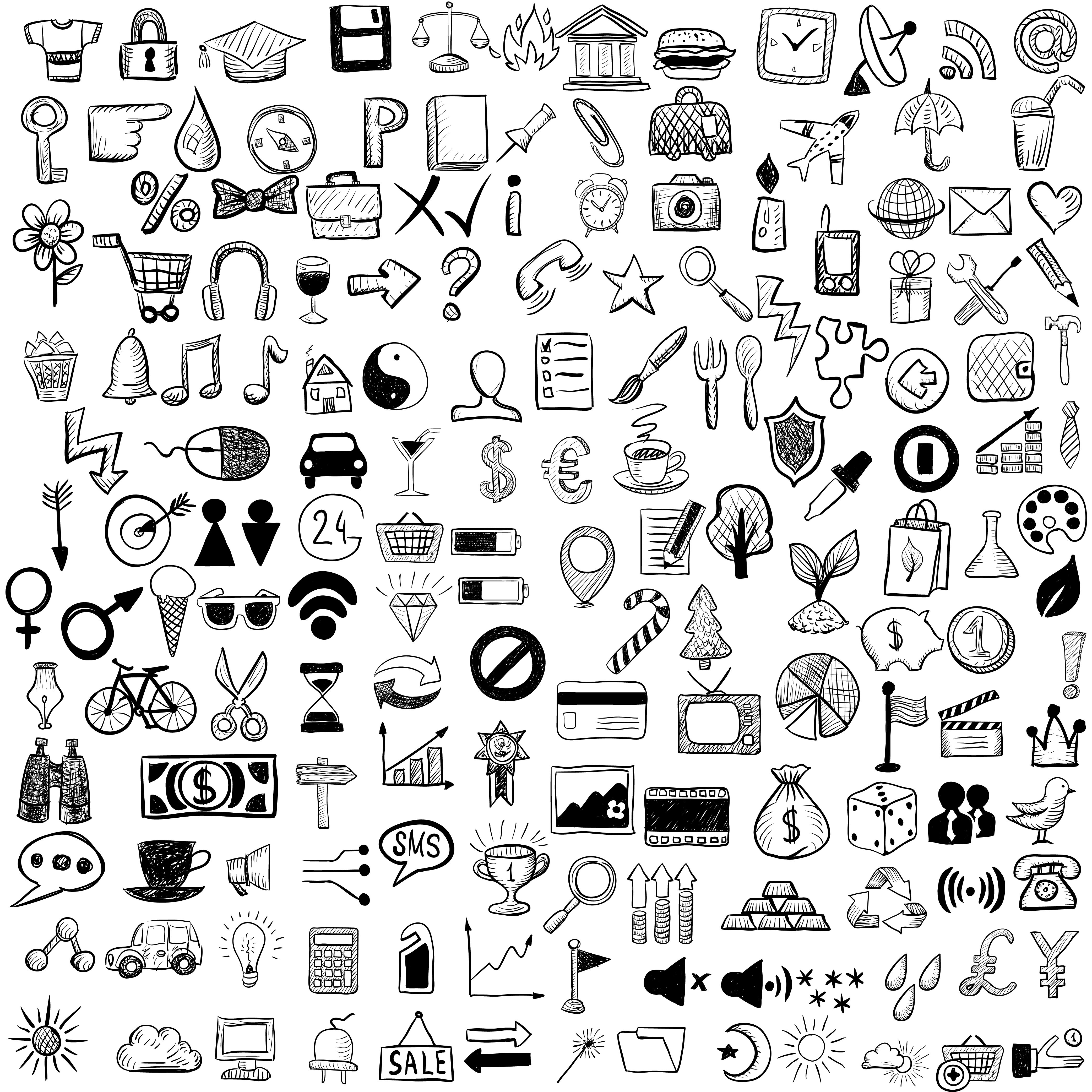 ![Набор нарисованных иконок]()