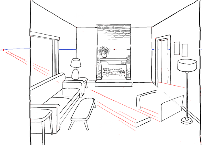 Рисование интерьера комнаты легкий
