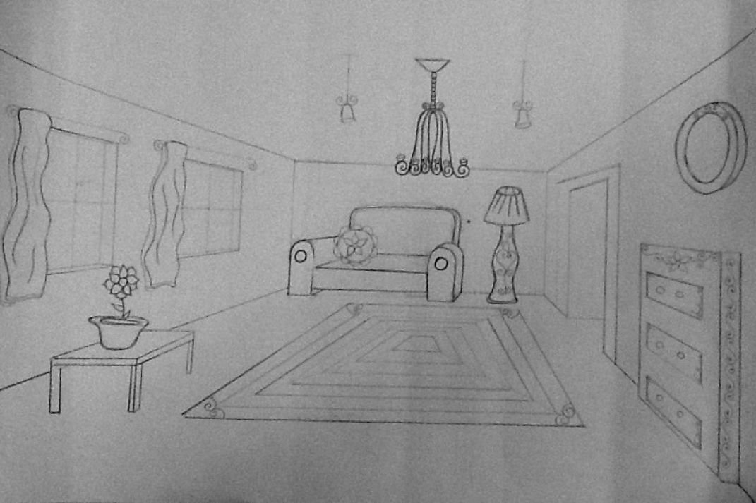 ![Рисунок комнаты карандашом]()