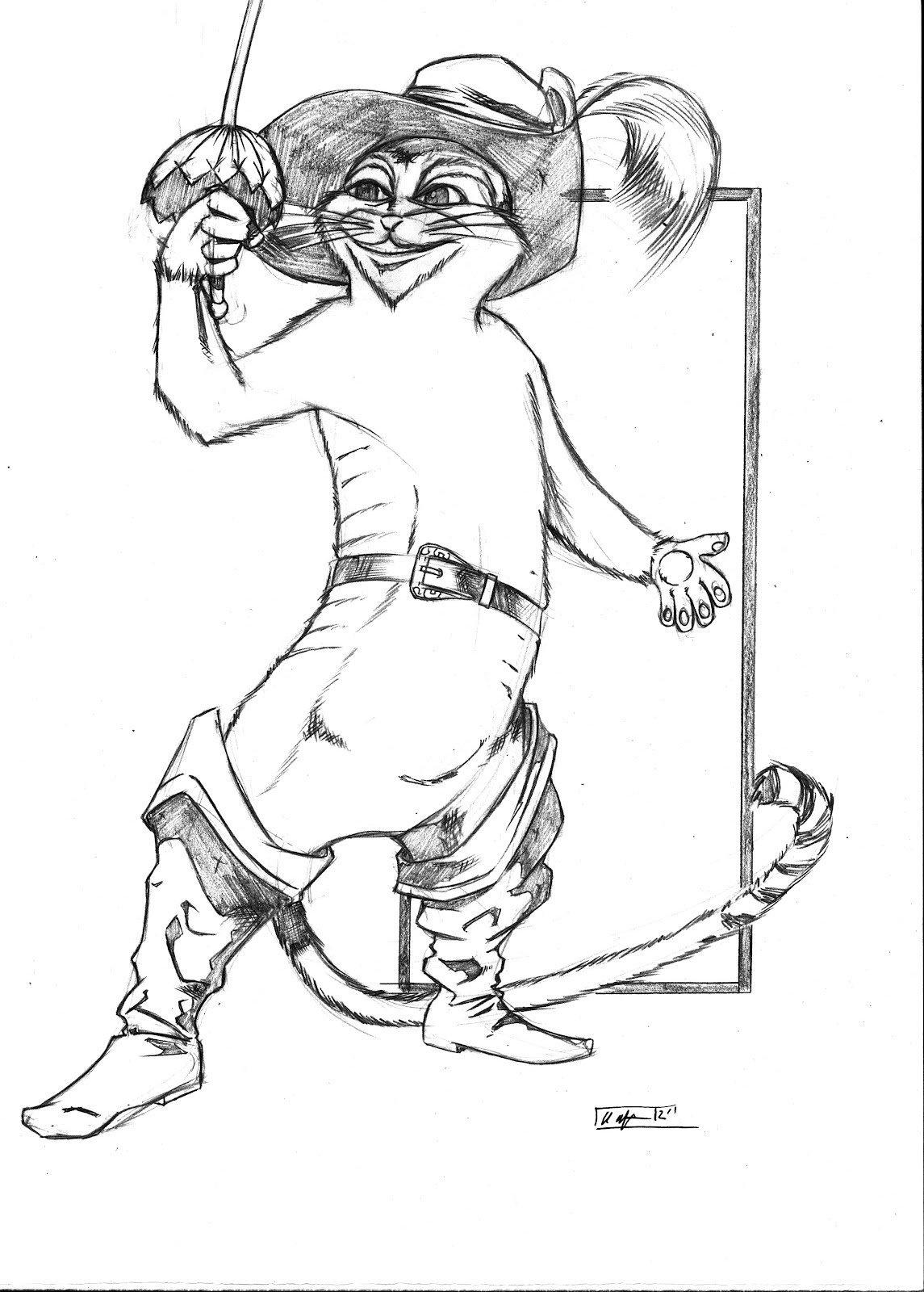 ![Кот в сапогах рисунок карандашом]()