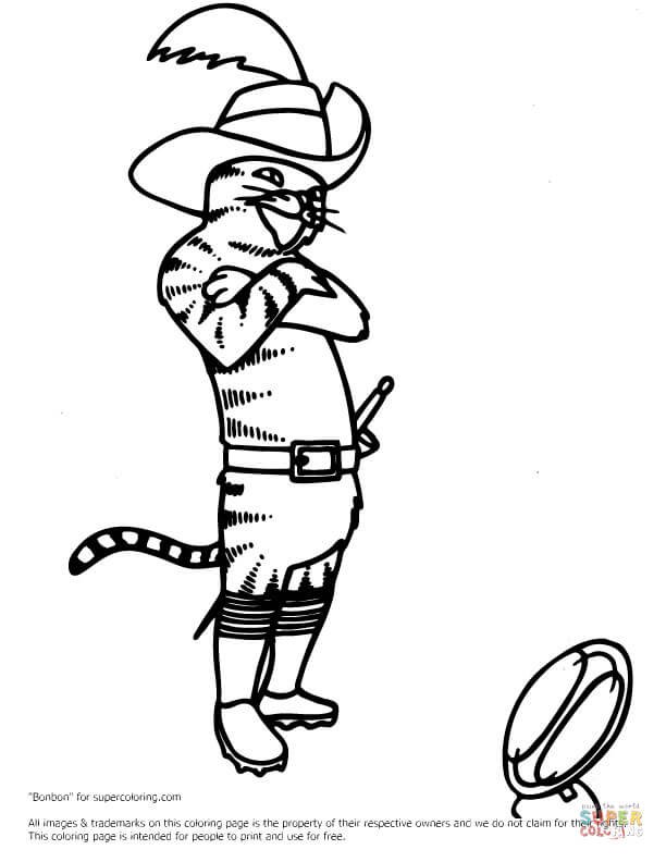 ![Кот в сапогах раскраска]()