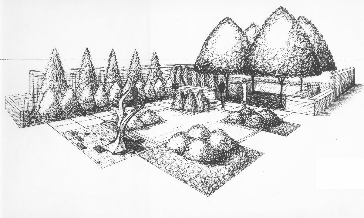 ![Эскиз ландшафта сада]()