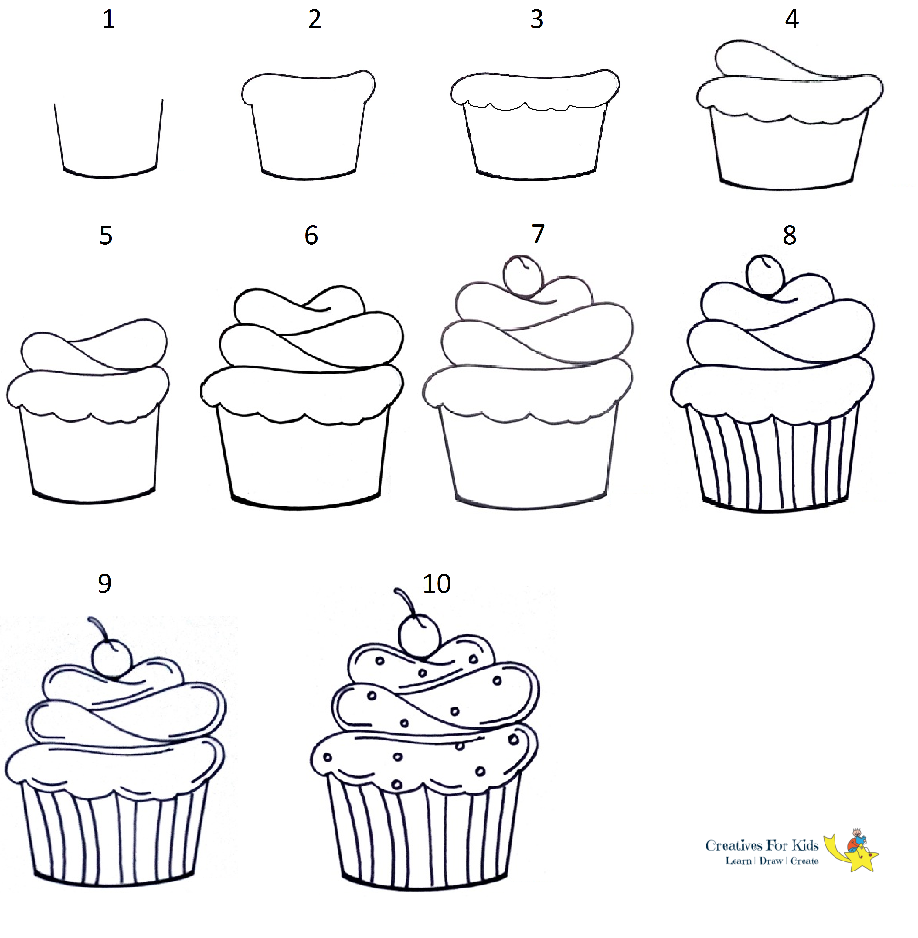 ![Поэтапное рисование кекса]()