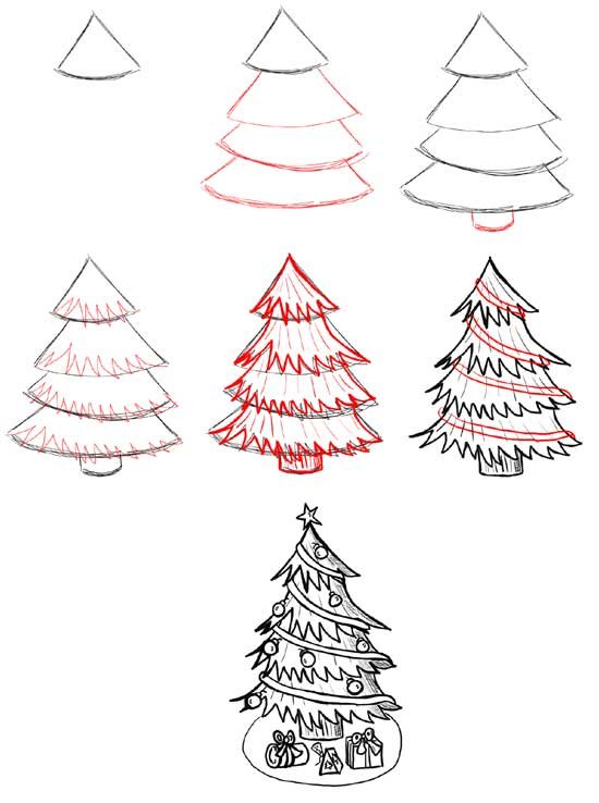 ![Как рисовать елку]()