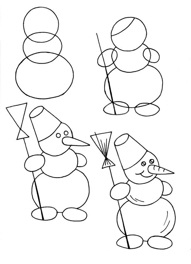Поэтапное рисование снеговика