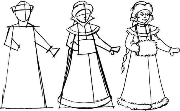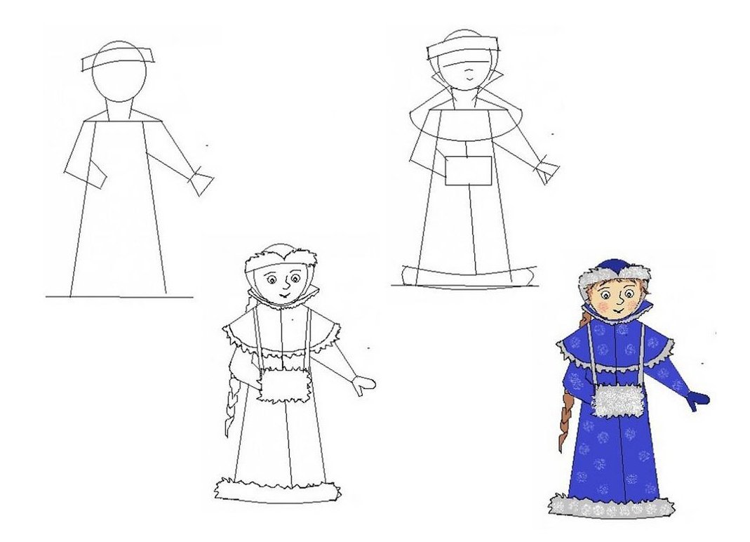 Поэтапное рисование Снегурочки для детей