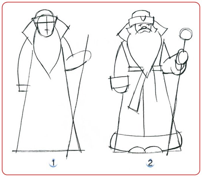 Этапы рисования Деда Мороза