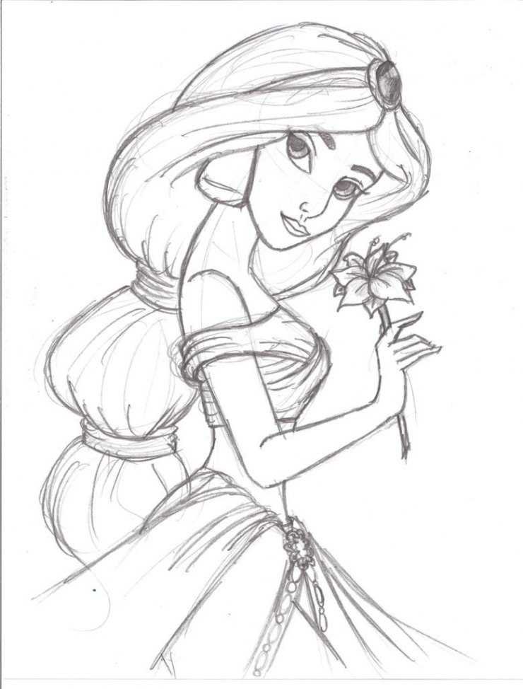 ![Скетч принцессы Дисней Жасмин]()