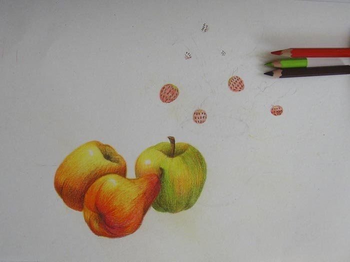 Рисование фруктов цветными карандашами