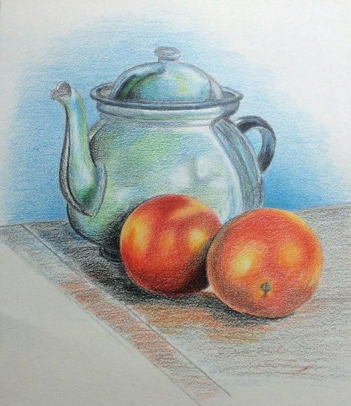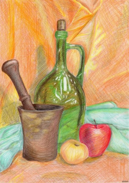 ![Рисунок цветными карандашами натюрморт]()
