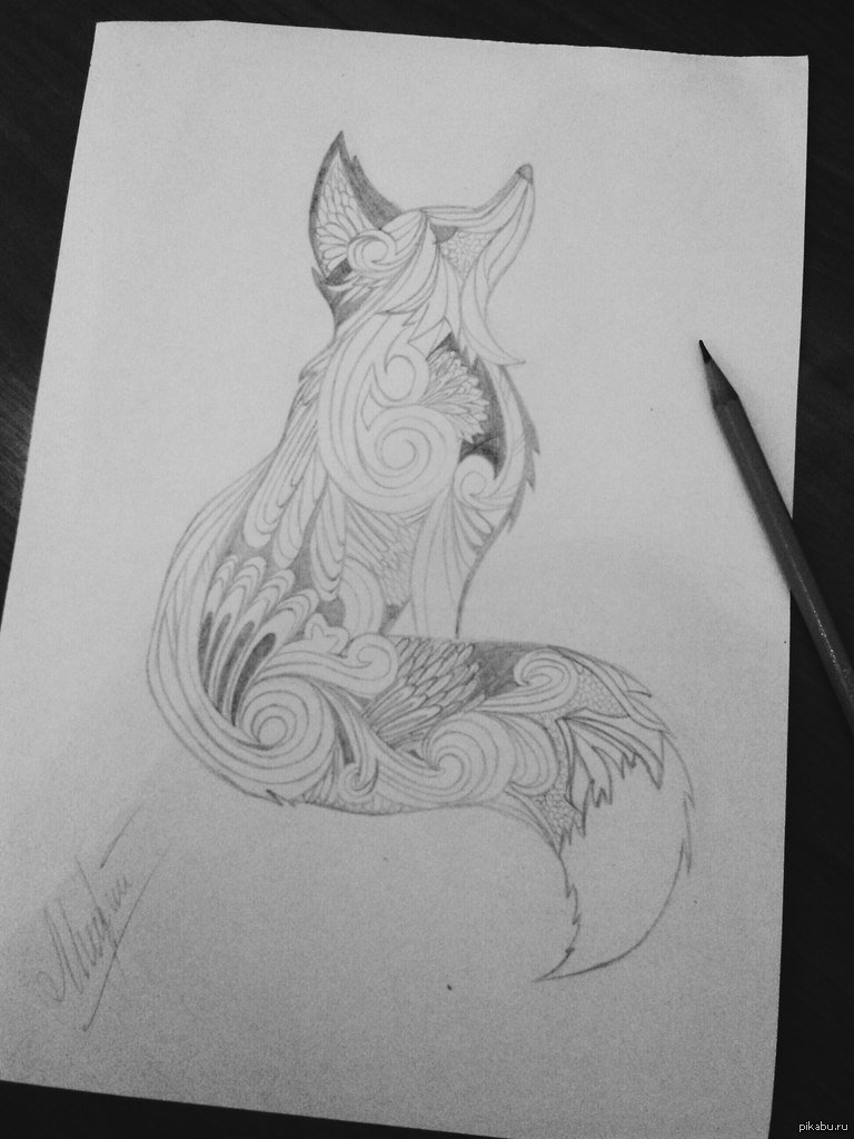 Лиса карандашом для срисовки