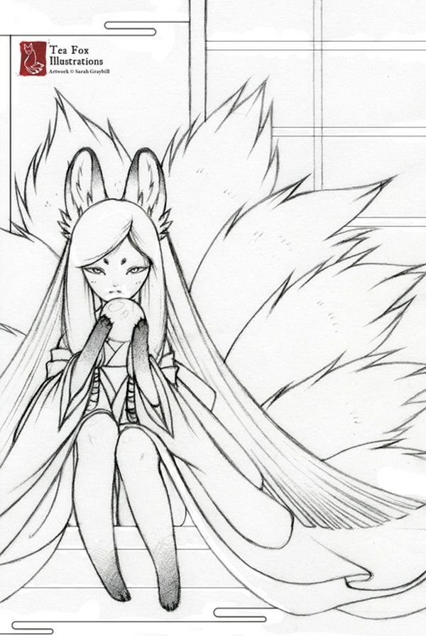 Кицунэ рисунок для срисовки