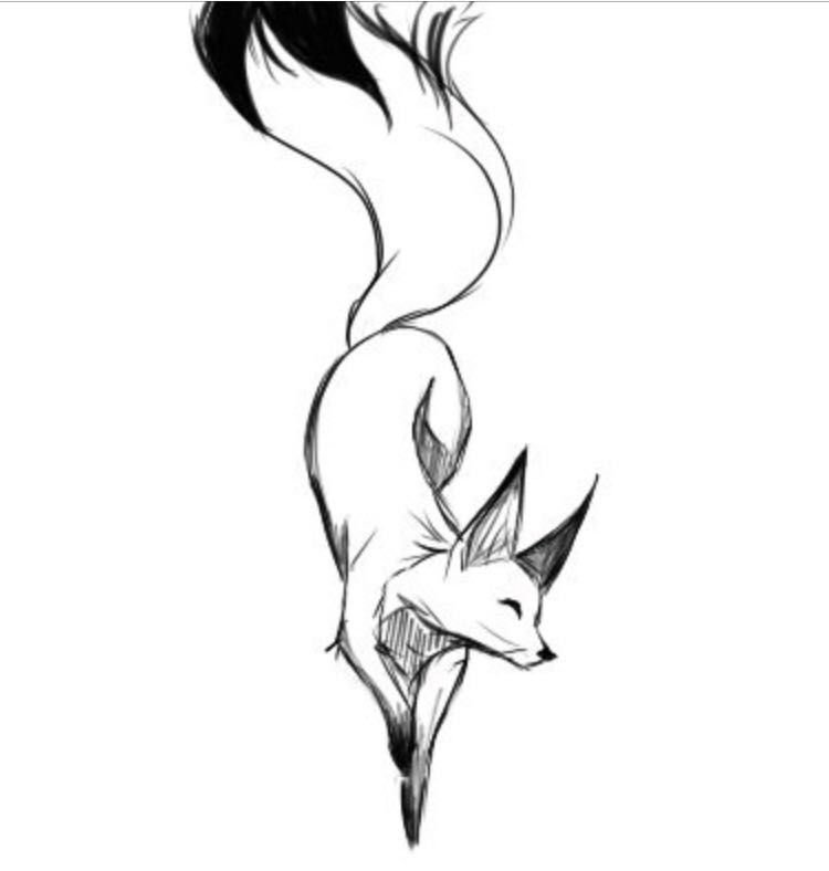 ![Эскиз лисы черно белый]()
