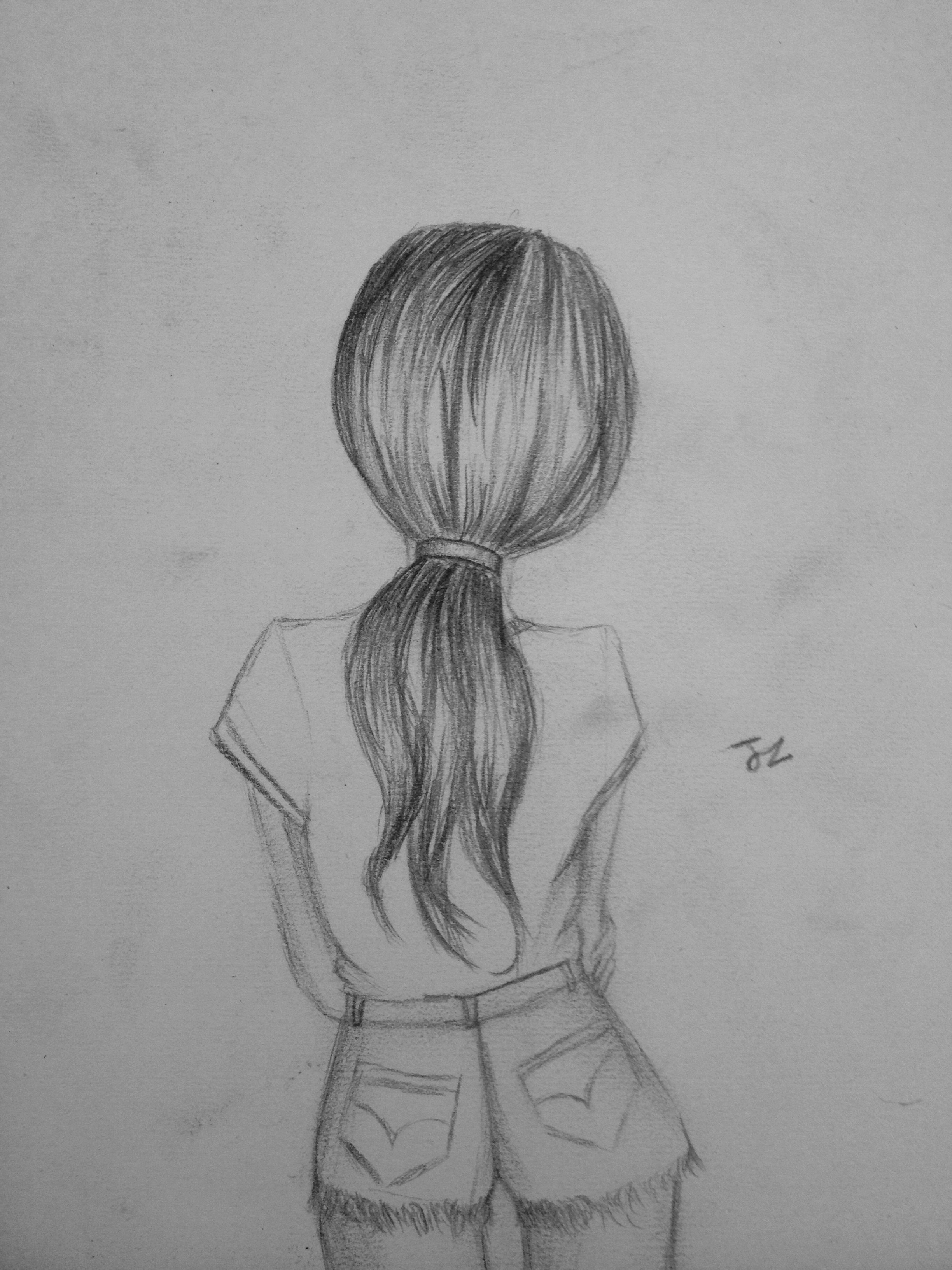 ![Рисунки карандашом девушки со спины]()